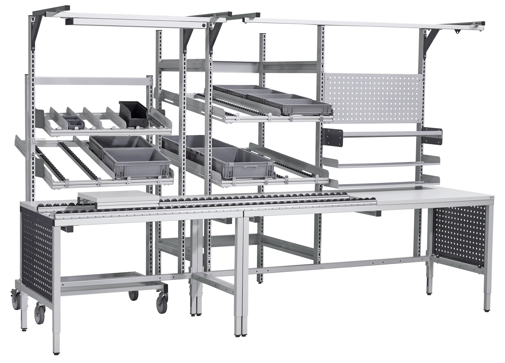 Mit den Montagelinien von ERGO-line steigern Sie den Produktionsfluss gezielt. Dank des modularen Baukastensystems lassen sich die Systeme individuell an Ihren Arbeitsplatz anpassen. Rollenbahnen verbinden einzelne Arbeitsprozesse und Montageschritte effizient miteinander und sorgen für einen gleichmässigen Materialdurchlauf.