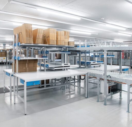 Unsere höhenverstellbaren Packtische folgen einem modularen Prinzip. Dank des Baukastensystems lassen sie sich auch nach vielen Jahren flexibel erweitern, anpassen oder neu konfigurieren, exakt nach Ihren individuellen Anforderungen.
