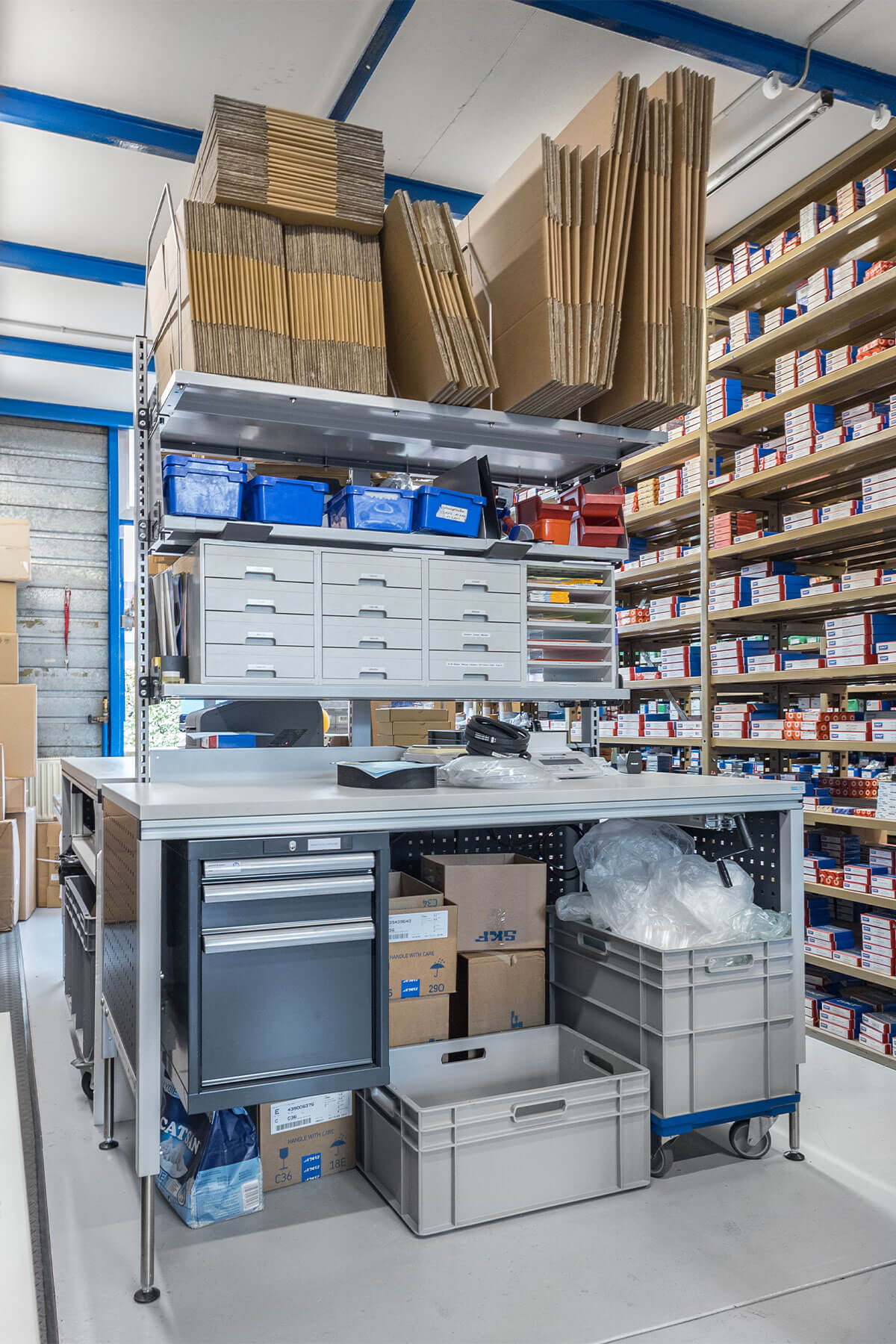 Mit einer individuell konzipierten Packinsel und einem separaten EDV-Arbeitsplatz auf Basis von ERGO-Basic Tischen optimierte ERGO-line die Logistikprozesse der Kull-Laube AG im Bereich Warenausgang und Datenverarbeitung.